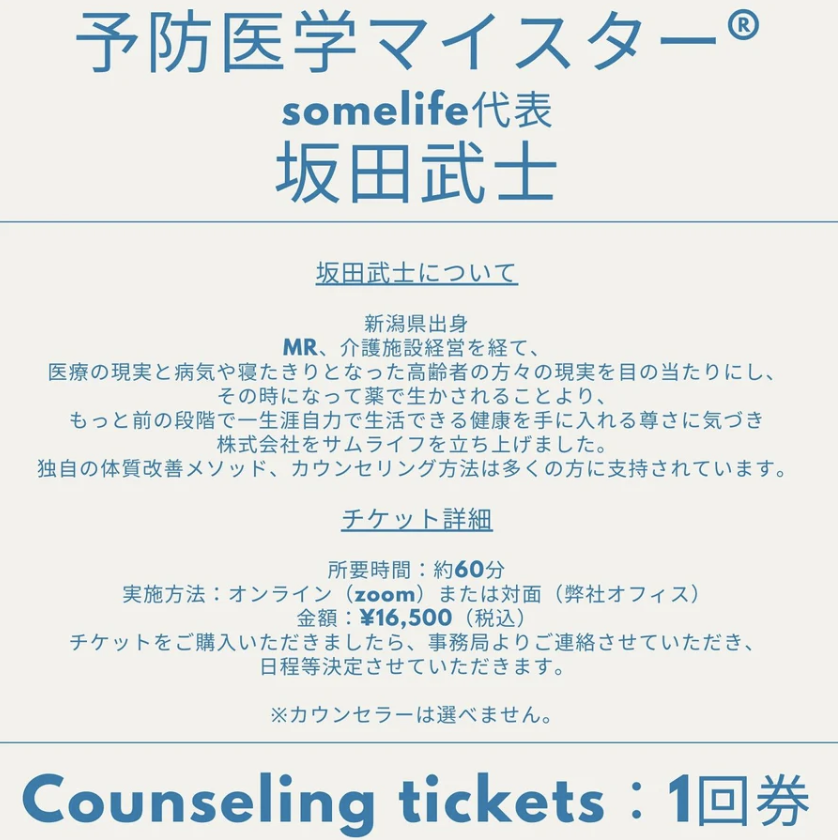 坂田武士の予防医学カウセリングチケットです。