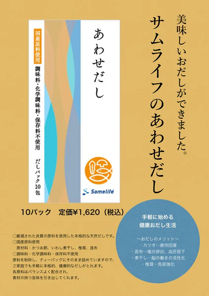 ○厳選された良質の原料を使用した本格的な天然だしです。 ○国産原料使用 原材料:かつお節、いわし煮干し、椎茸、昆布 ○調味料・化学調味料・保存料不使用 原料を粉砕し、ティーバッグにそのまま詰めていますので、 ご家庭でも手軽に本格的、健康的なだしがとれます。 各原料はバランスよく配合され、 素材の持つ旨味を引き出してくれます。